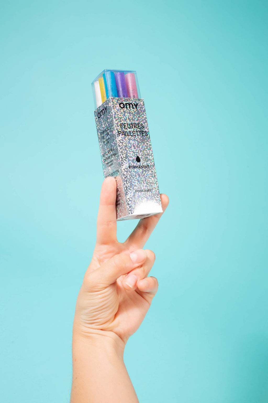 Bring sparkles to your colorings with the Glitter Markers! The shimmery colors bring depth and sparkles to your drawings. Press markers down to bring glitters out. Use on any color paper and surfaces. Assortment of 9 waterproof and sunroof glitter colors: blue, violet, yellow, silver, green, pink...