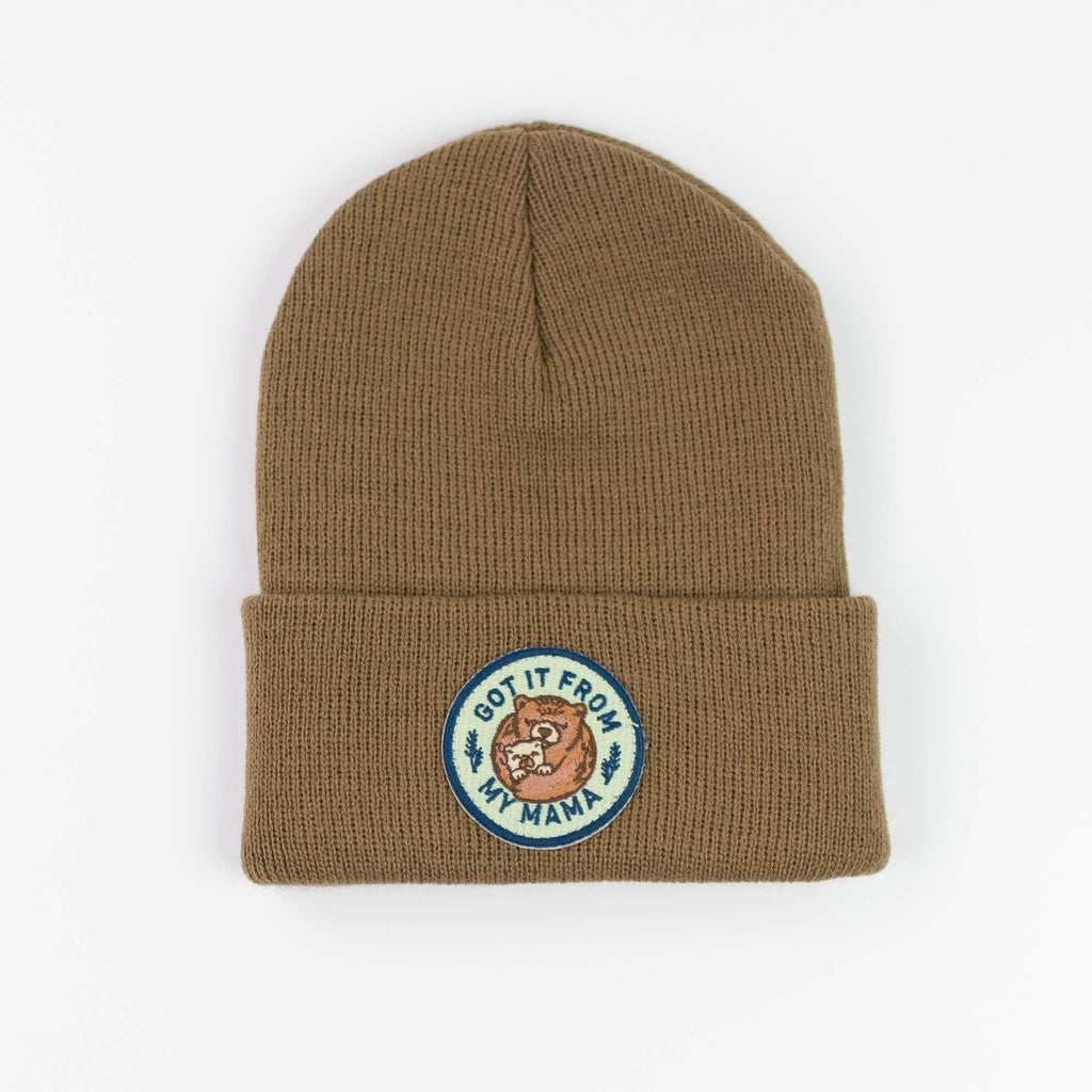Color: Earth Knit beanie with embroidered patch Soft & stretch fit | Hand wash cool water | Turn beanie inside-out before washing | Dry flat. Made in the USA.
