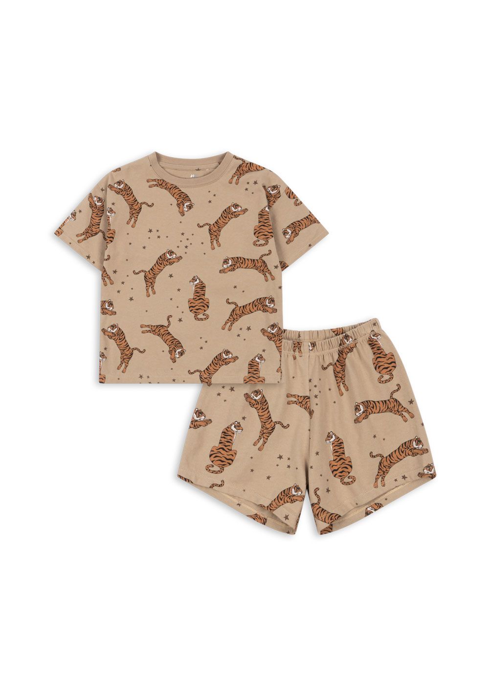 Classic cotton set featuring a tee with short set-in sleeves and soft shorts with an elastic waist. Please note: for smaller sizes, from 9-18 months, the top features press buttons on the left shoulder for easy dressing. Sizes 2 years and up feature a regular round neck with rib detailing. Material: 100% organic cotton. GOTS, Organic, certified by CU1094701.