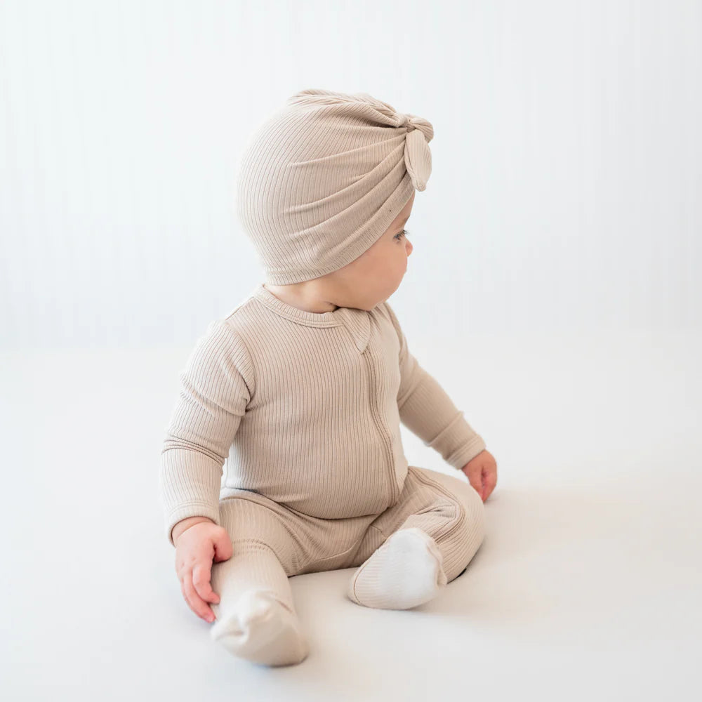 Keep your little one cozy and looking extra sweet in this turban-style head wrap made from ribbed bamboo. The soft, breathable fabric stretches for a snug fit that doesn't fall off, while a tie detail at the front adds the finishing touch.