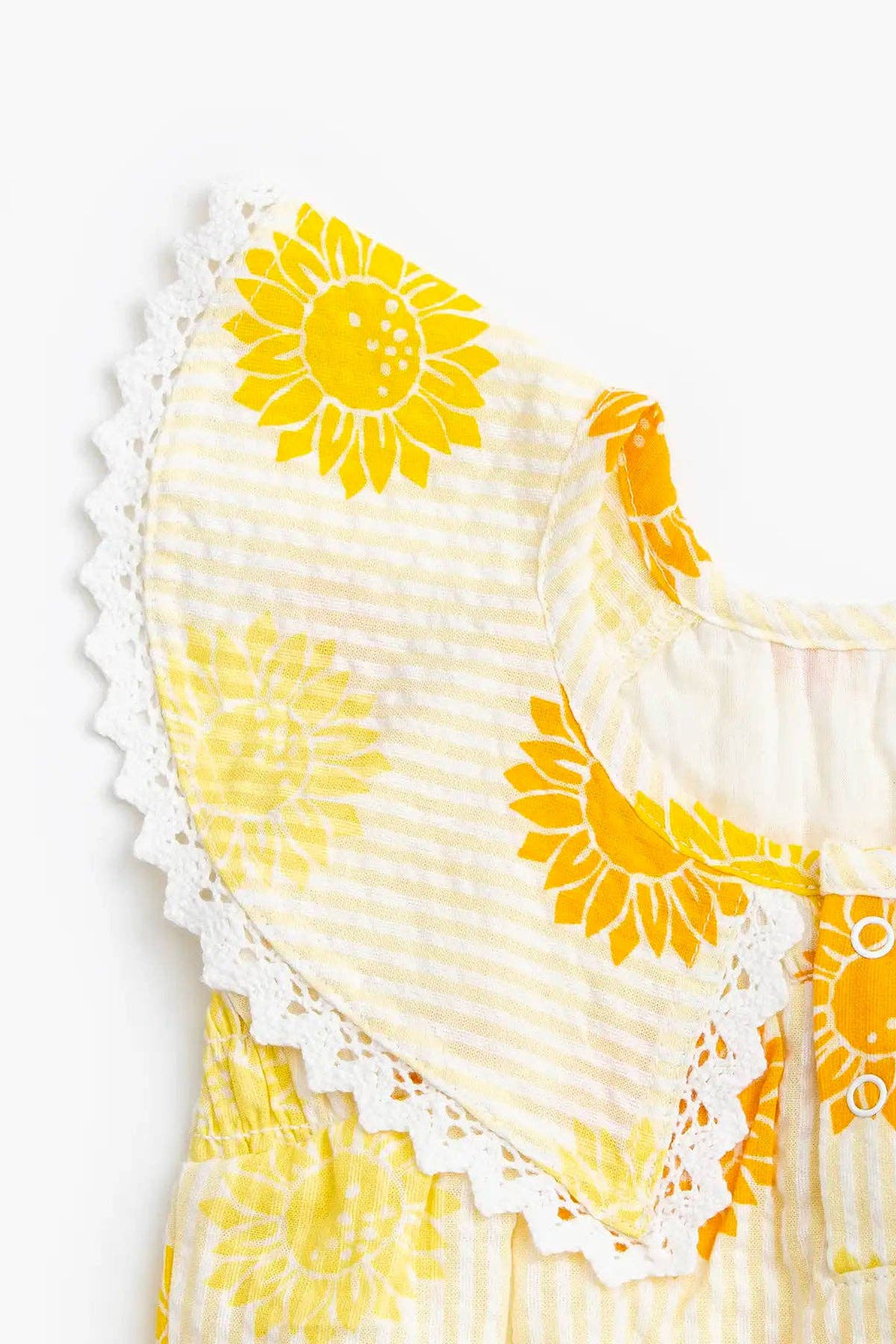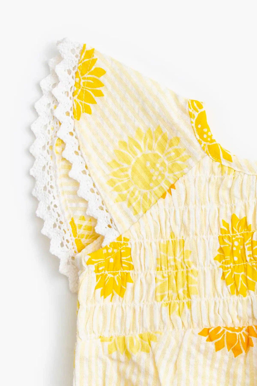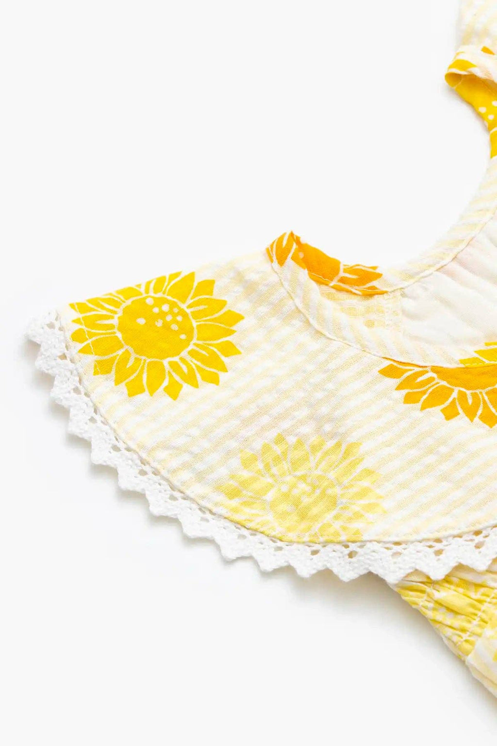 A fresh organic take on a classic look complete with smocking, flutter sleeves, and a bubble-style silhouette. Perfect for baby’s first party.